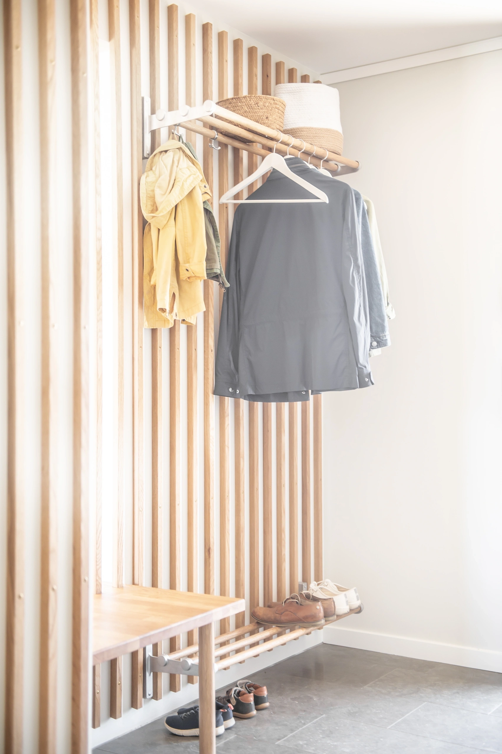 Här finns plats för avhängning och förvaring, men också för spontana samtal vid hemkomst, för barn som landar efter skoldagen och för gäster som välkomnas in.