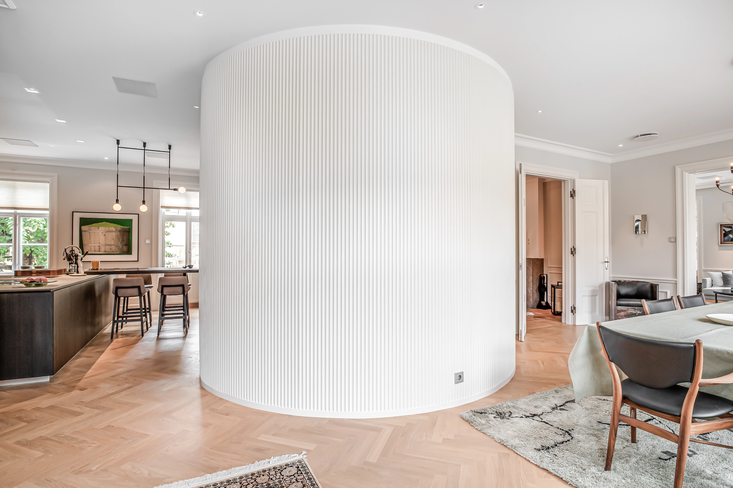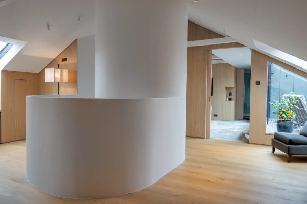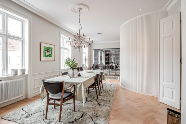 Renoveringen gjordes till exempel från taket och nedåt, vilket skiljer sig från de flesta projekt. Här har noggrann planering i samråd mellan arkitekt, projektledare och hantverkare varit avgörande för resultatet.